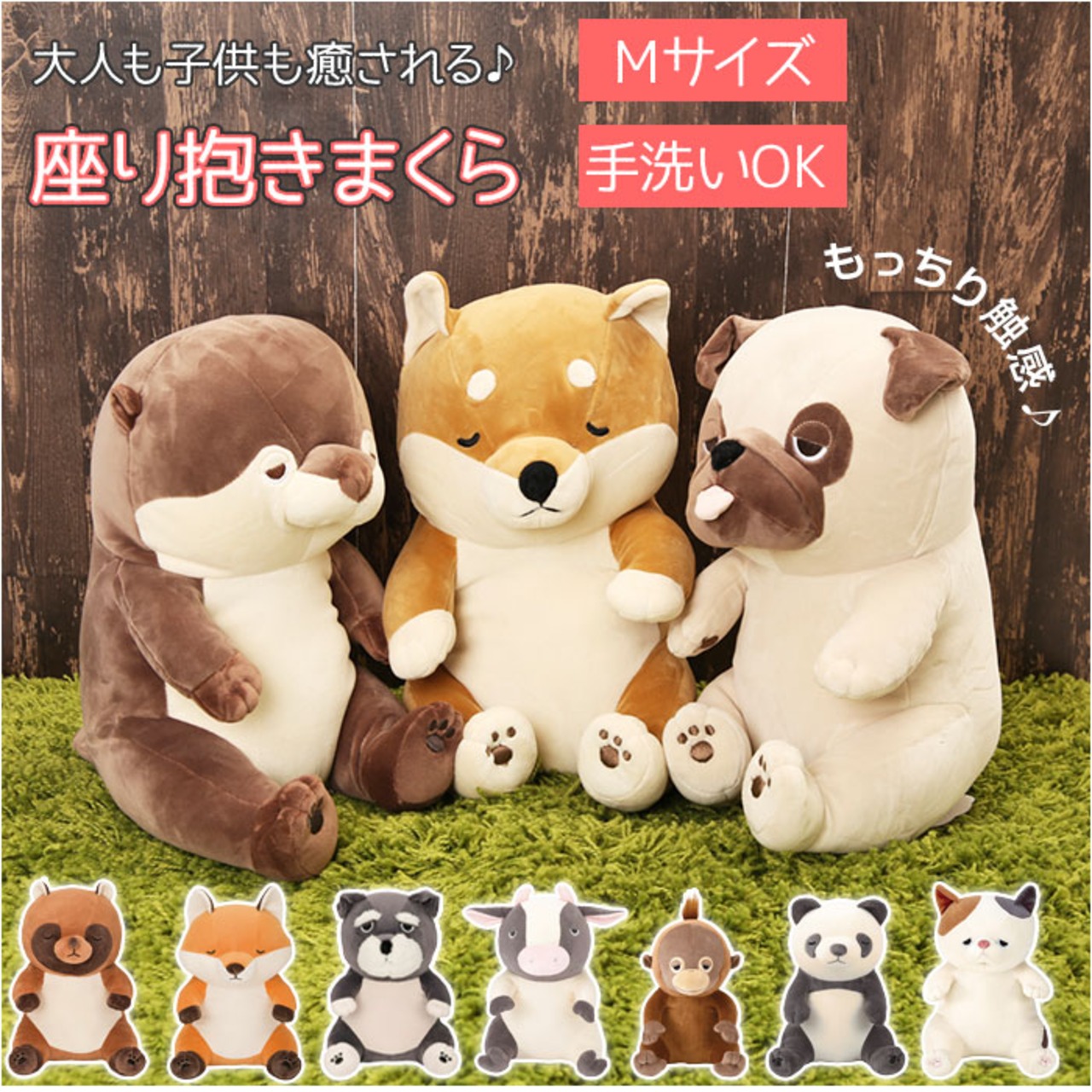・もっちり触感とキョトンとした座り姿が可愛い、座り抱きまくら Mサイズ。(対象年齢:6歳以上)