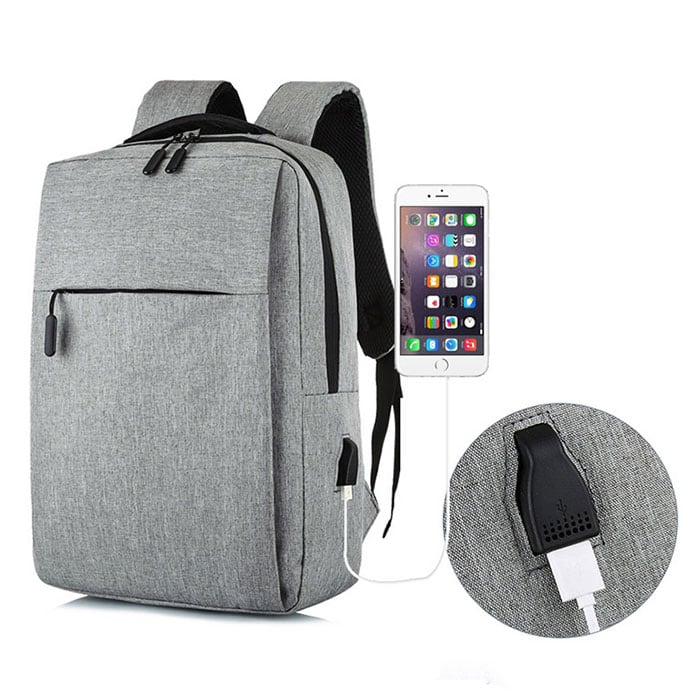 ・リュック内にモバイルバッテリーを入れておけば、USBポートを通じて充電ができる。