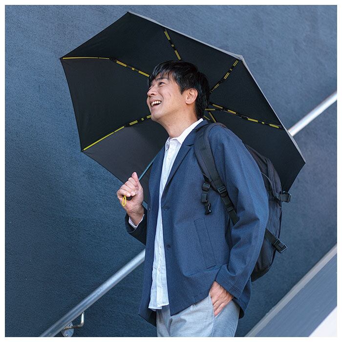※開く前に空気を含ませるように傘を振り、傘生地が貼り付いていないか確認してください。貼り付いた状態で開くと故障の原因になります。