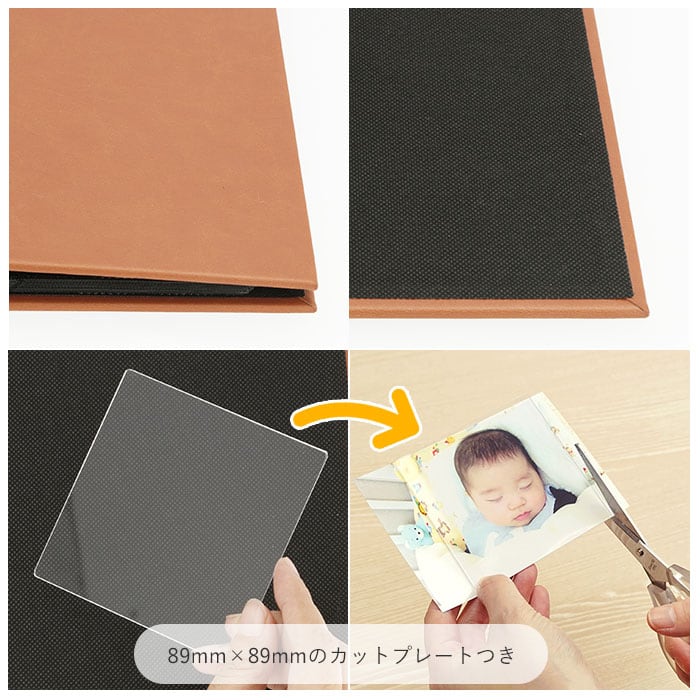 ・89mm×89mmのサイズにお手持ちの写真をカットできるプレート(樹脂製)が付属♪