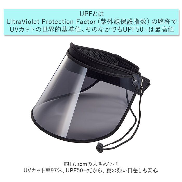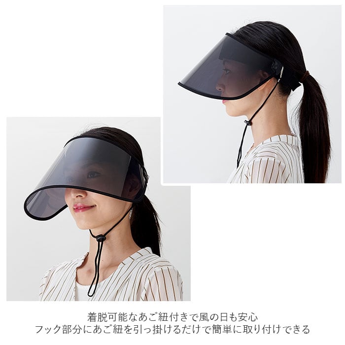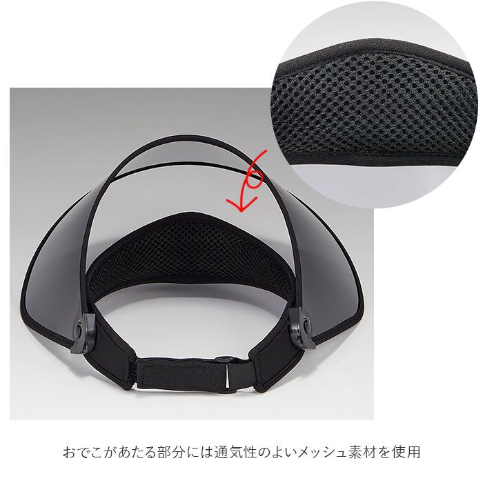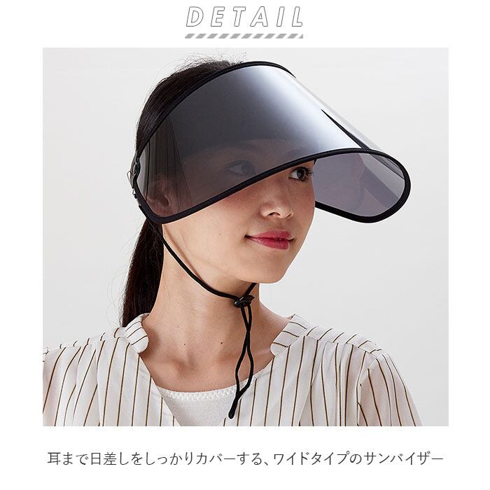 ・耳まで日差しをしっかりカバーする、ワイドタイプのサンバイザー。