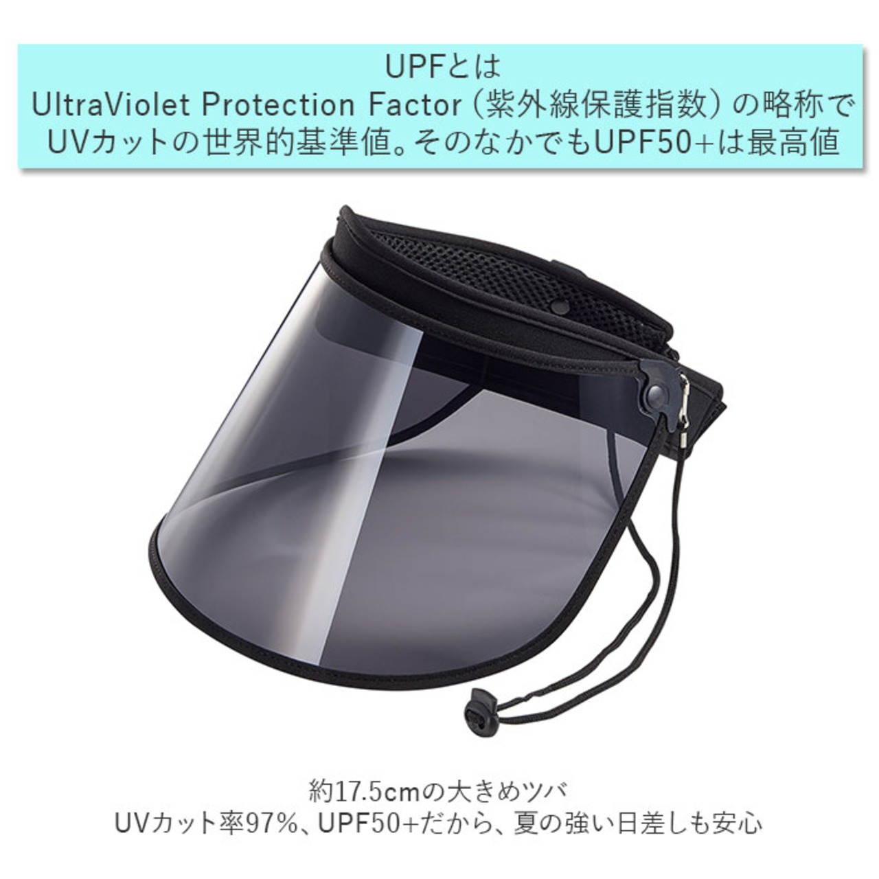 ・約17.5cmの大きめツバ。UVカット率97%、UPF50+だから、夏の強い日差しも安心。