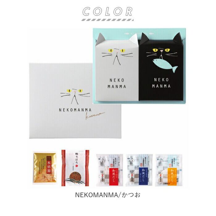 ・ニャンだ!このうまさ!枯節や3種類のだしパック、佃煮ふりかけがセットになった、「かつお節専門店のギフト NEKOMANMA」が発売。