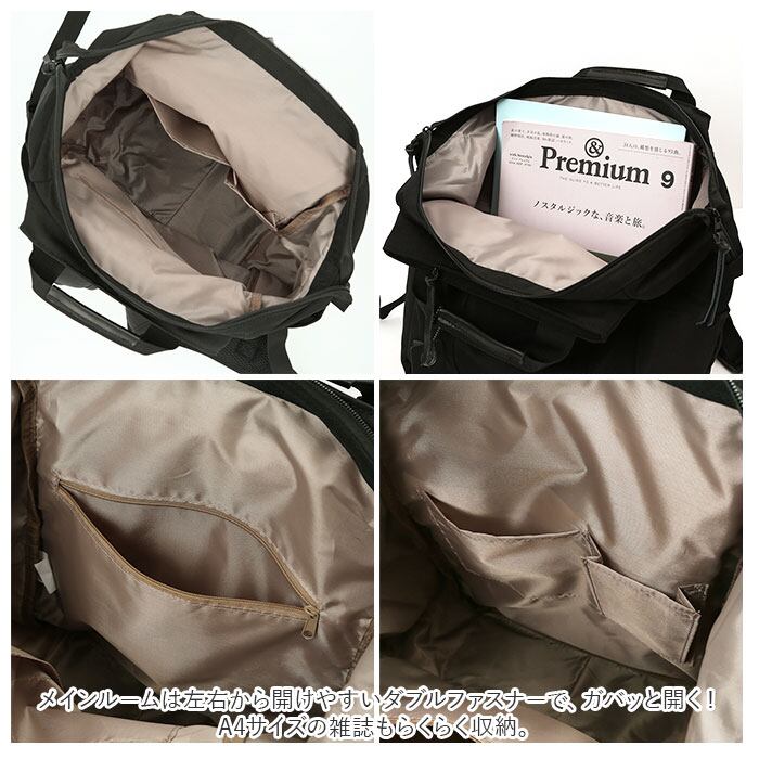 ・荷物を分けやすい3ルーム仕立てで、ポケットが充実♪