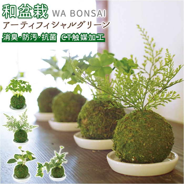 消臭 フェイクグリーン 盆栽 通販 観葉植物 フェイク 人工観葉植物 卓上 小さい こけだま 苔玉 インテリア グリーン ナチュラル 空気清浄 触媒 CT触媒 和盆栽 WA BONSAI 消臭アーティフィシャルグリーン フェイクグリーン 造花 花 観葉植物