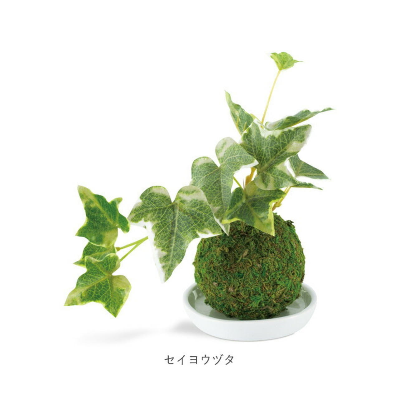 ・まるで本物のようなタッチでつくられた観葉植物の定番アイビー(セイヨウヅタ)や素朴な山野草として人気の高いシノブを、憧れの苔玉スタイルで!