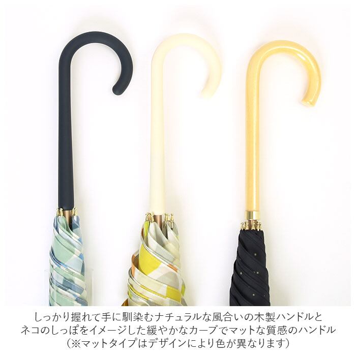 ・しっかり握れて手に馴染むナチュラルな風合いの木製ハンドルと、ネコのしっぽをイメージした緩やかなカーブデザインでマットな質感のハンドルをご用意。(※マットタイプはデザインにより持ち手の色が異なります。)