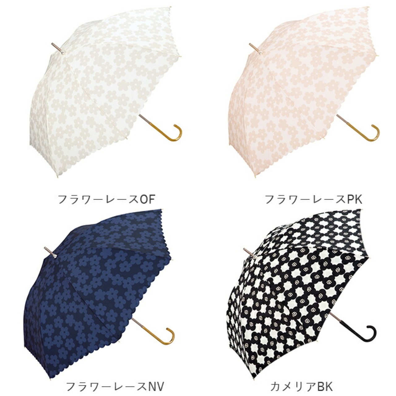 ※傘生地には防水はっ水加工を施し、縫製にははっ水糸を使用していますが、激しい雨や長時間のご使用では雨が染み込むことがございます。また、飾り加工部分(刺繍、ステッチ、バイピング等)は、デザインの特性上完全な防水はっ水加工が難しい場合があり雨が染みやすいのでご注意ください。