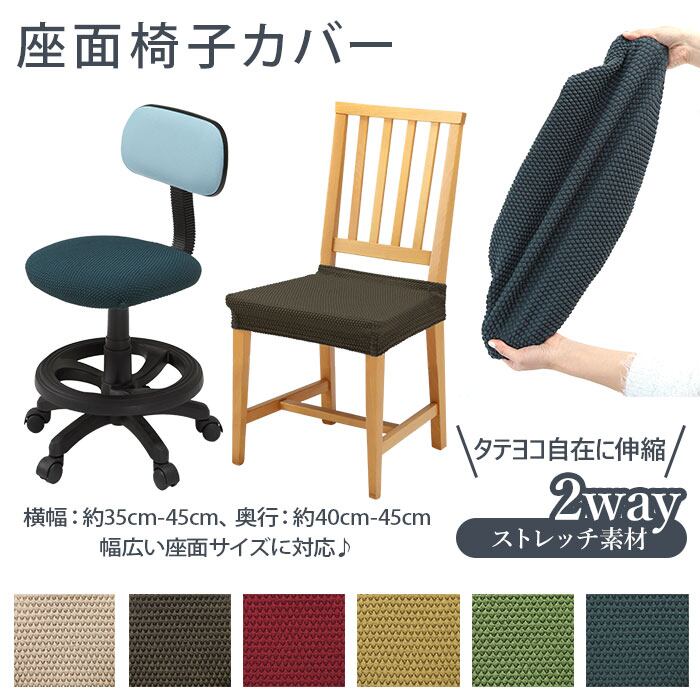・タテ・ヨコに自在に伸縮する2WAYストレッチ素材が、お使いの椅子の座面にぴったりフィット。