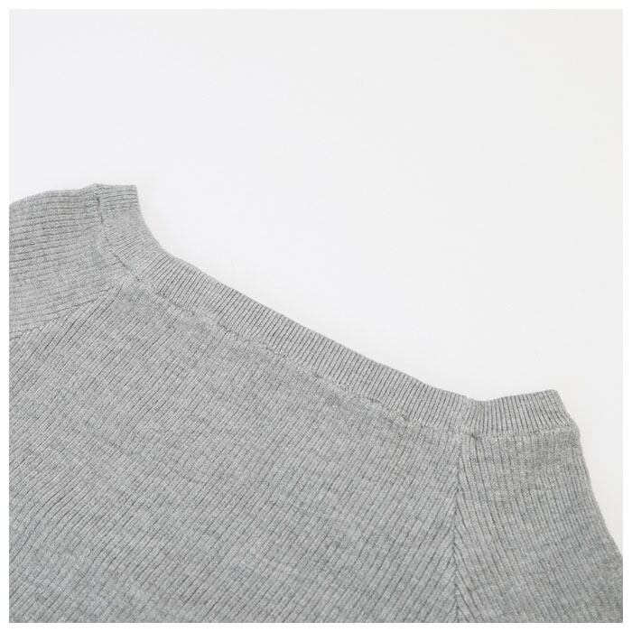 ・鎖骨に沿うようにカーブを描いた、ボートネックデザイン。デコルテラインをキレイ魅せ♪