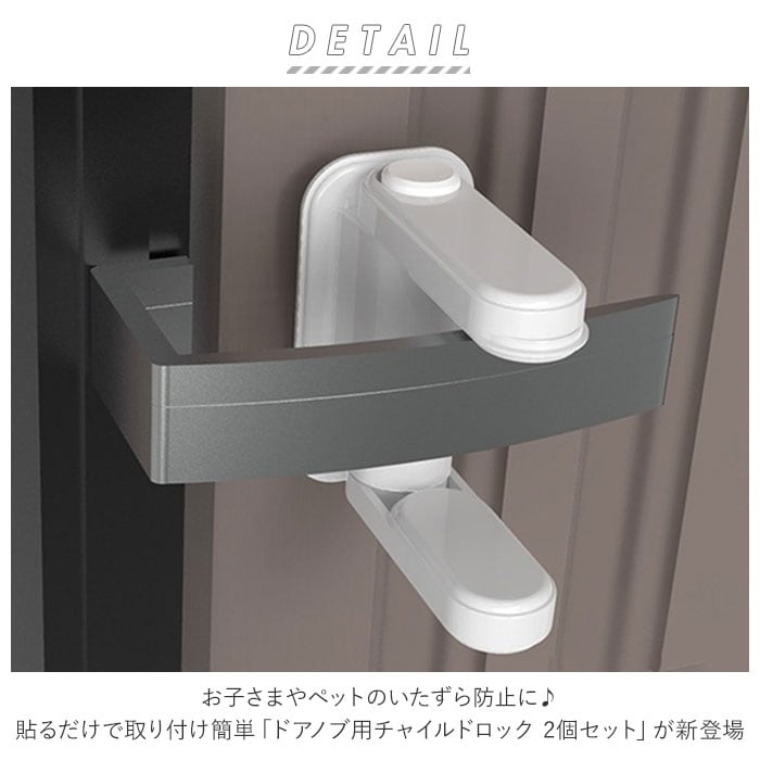 ・お子さまやペットのいたずら防止に♪貼るだけで取り付け簡単「ドアノブ用チャイルドロック 2個セット」が新登場。