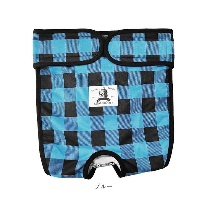 ・カジュアルなギンガムチェックの生地を黒のパイピングで縁取った、お洋服感覚で着られるオシャレなドッグ用マナーパンツ。