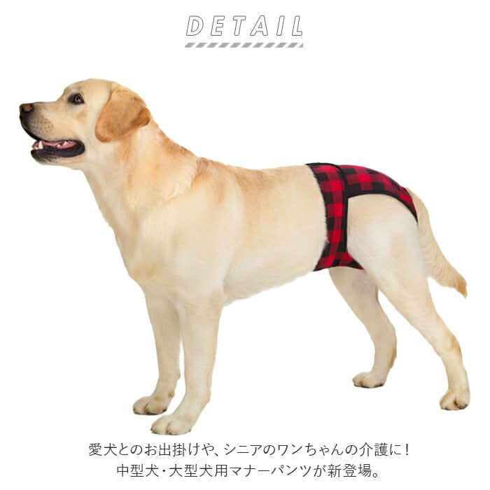 ・愛犬とのお出掛けや、シニアのワンちゃんの介護に!中型犬・大型犬用マナーパンツが新登場。