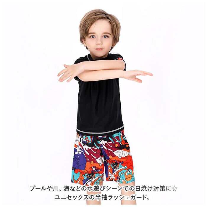 ・プールや川、海などの水遊びシーンでの日焼け対策に☆ユニセックスの半袖ラッシュガード。