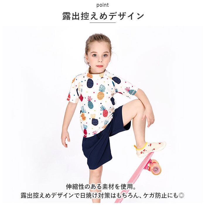 ・伸縮性のある素材を使用。露出控えめデザインで日焼け対策はもちろん、ケガ防止にも◎