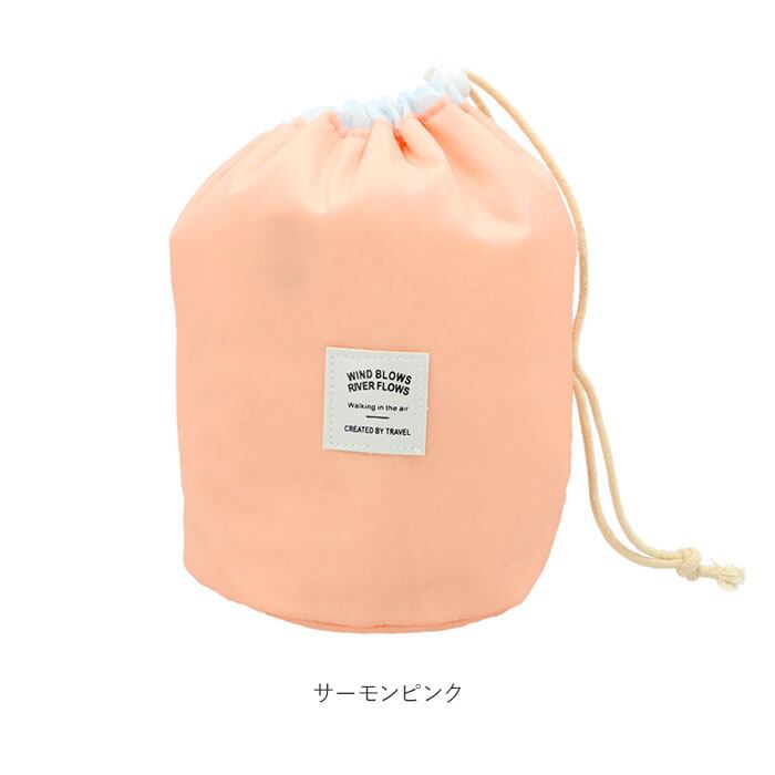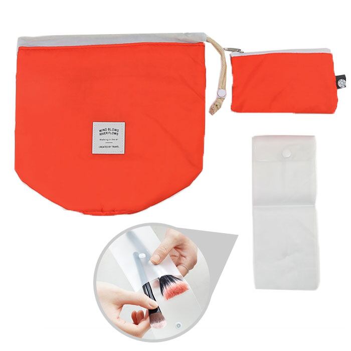 ・半透明のブラシケースと、お薬などの小物収納に便利な、巾着と同色のミニポーチ付き。ミニポーチは、スナップボタンで巾着内側に留められる仕様◎