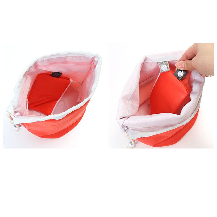 ・ドローコード式のヒモがストッパーになるから、中身が飛び出てくる心配なく使える!