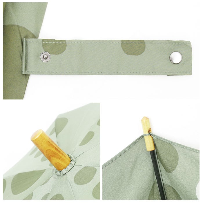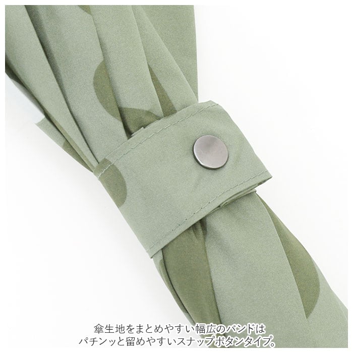 ・傘生地をまとめやすい幅広のバンドはパチンッと留めやすいスナップボタンタイプ。