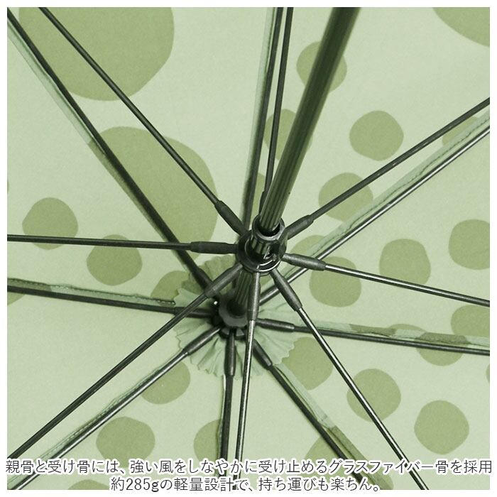 ・親骨と受け骨には、強い風をしなやかに受け止めるグラスファイバー骨を採用。約285gの軽量設計で、持ち運びも楽ちん。