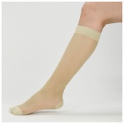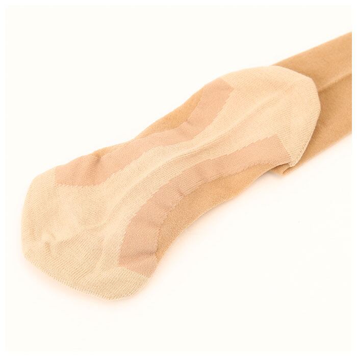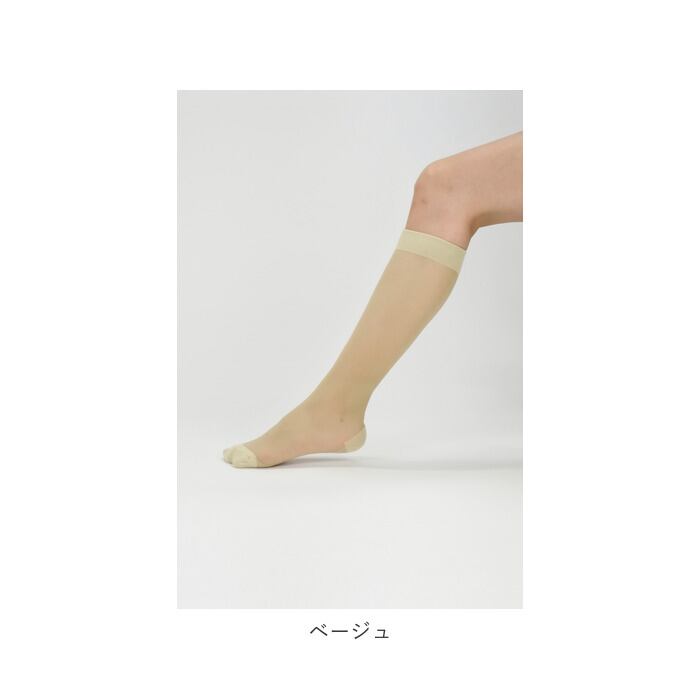 ・靴下に使う強度のある弾性糸を使用!足首側から13hPa、11hPa、5hPaと3段階の着圧機能付きで、ほどよく引き締めてくれる薄手のハイソックス。