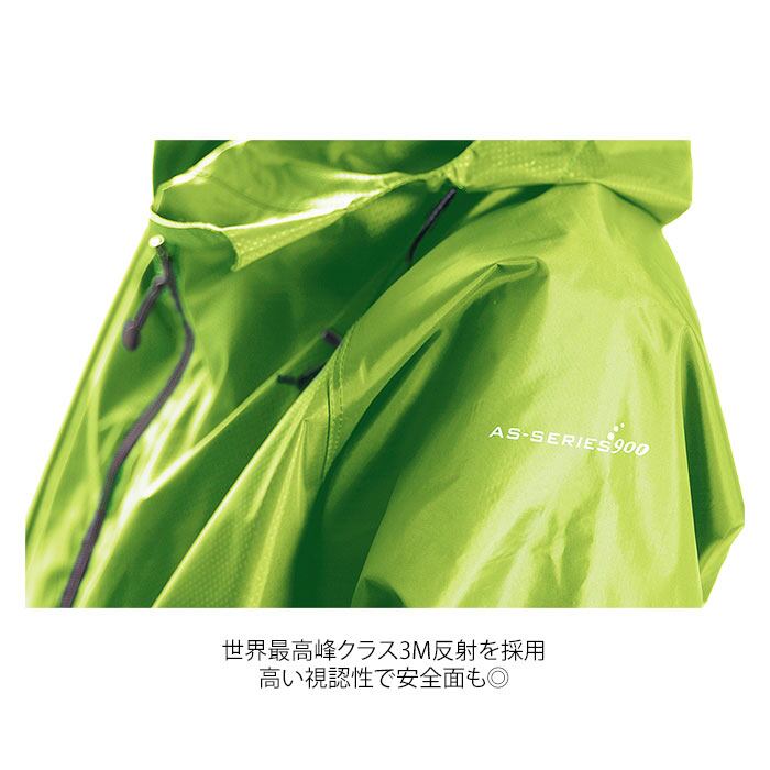・ウエアと一体になったフードと絞り調節コードで、身体の中に水や雨に侵入をふせいでくれる。また、裾口も同じ絞り調節コードがある