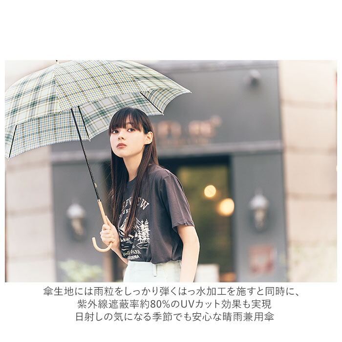・傘生地には雨粒をしっかり弾くはっ水加工を施すと同時に、紫外線遮蔽率約80%のUVカット効果も実現。日射しの気になる季節でも安心な晴雨兼用傘。
