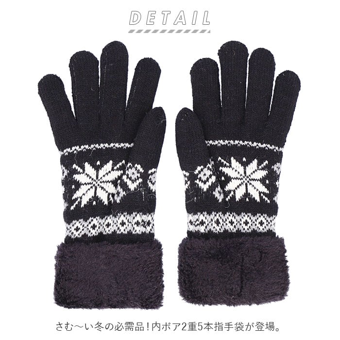 内ボア2重5本指手袋