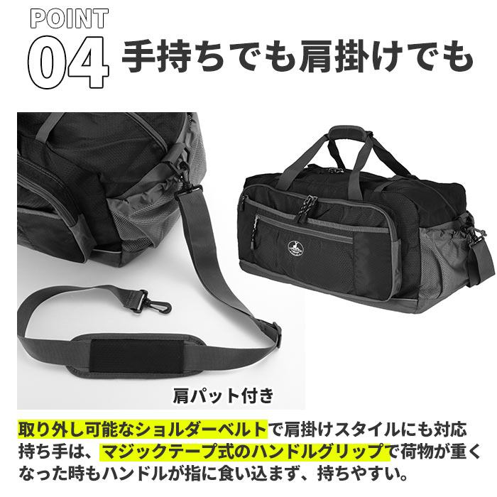 ・メイン収納の横幅約63cmとたっぷりサイズ。長期旅行やお子さまの修学旅行用バッグとしてはもちろん、部活やスポーツイベント用のバッグとしても活躍する大容量サイズ、48リットル!
