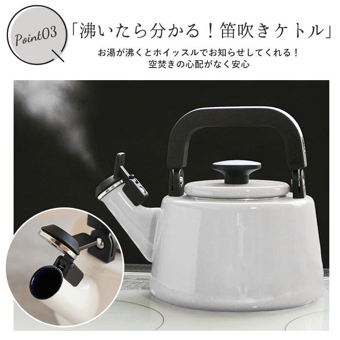 ・お湯が沸くとホイッスルでお知らせしてくれるから、空焚きの心配がなく安心。