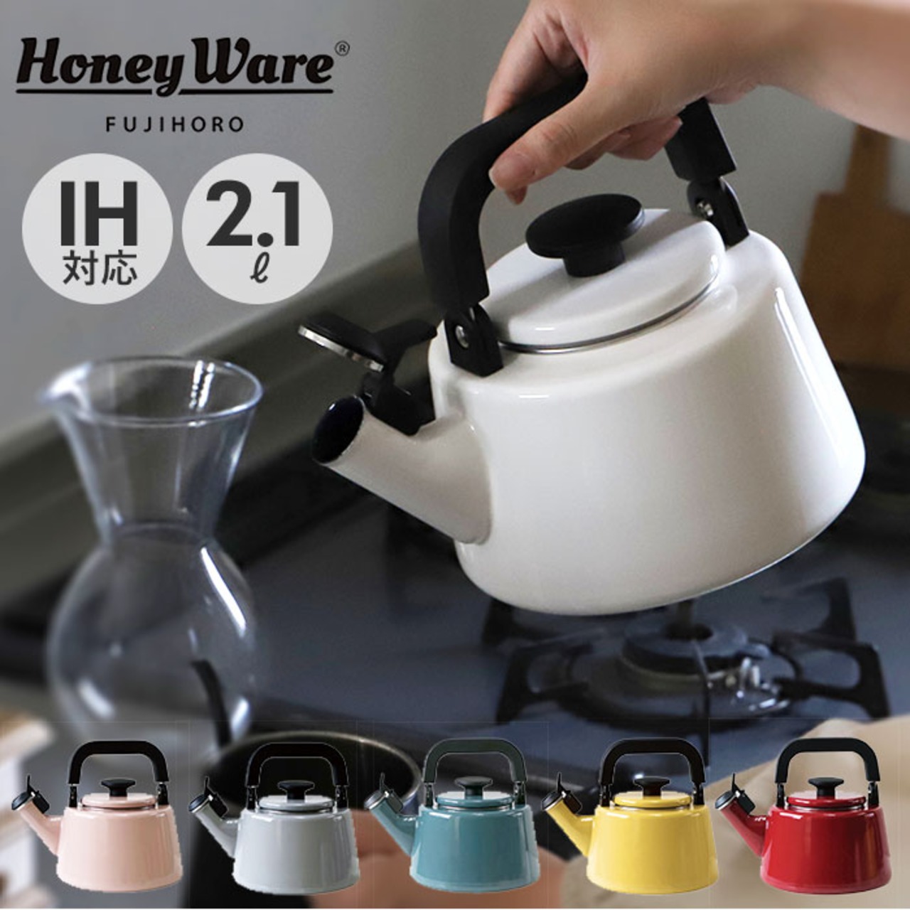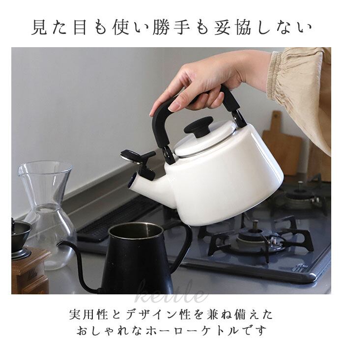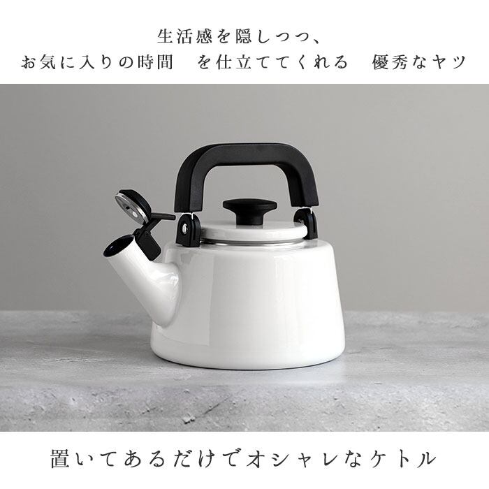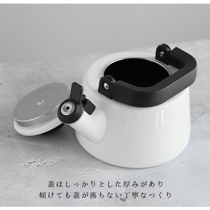 ・丈夫さとシンプルデザインが魅力!「富士ホーロー コットンシリーズ」の笛吹きケトル(満水容量2.1L)が登場。(※満水容量:2.1L/適正容量:1.3L。湯沸かし時は7分目以下のご使用が目安です。)