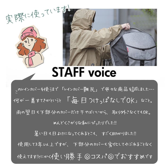 ・ママの強い味方であるレインカバー。常に自転車につけておけばいつでも安心。