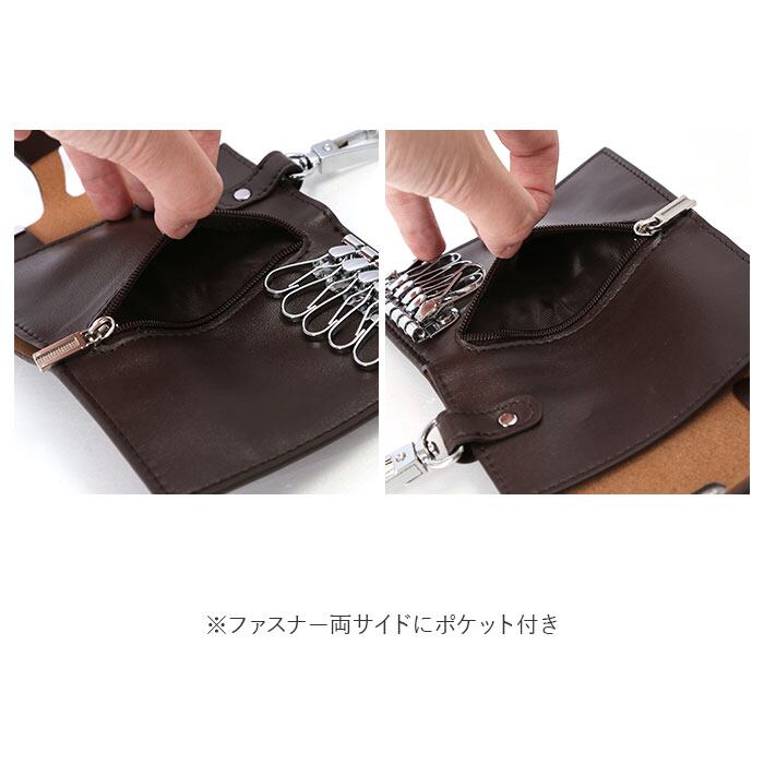 ・フラップを開いて右側の6連リング、左側の大型リングやカラビナに、それぞれ複数の鍵が収納可能!