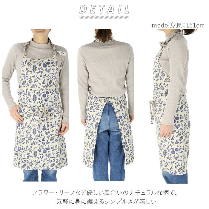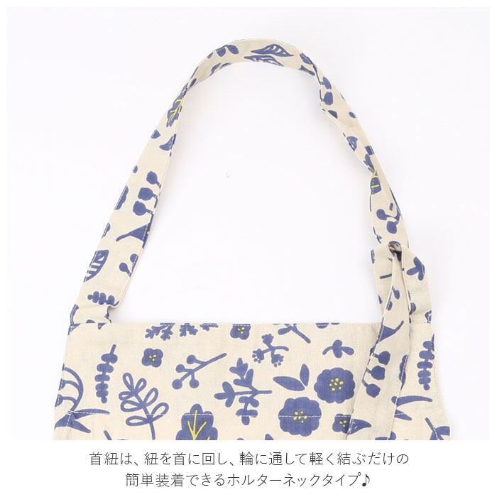 ・毎日の家事が楽しくなる、ナチュラル&オーガニックな柄が魅力のシンプルなプリント柄エプロン。