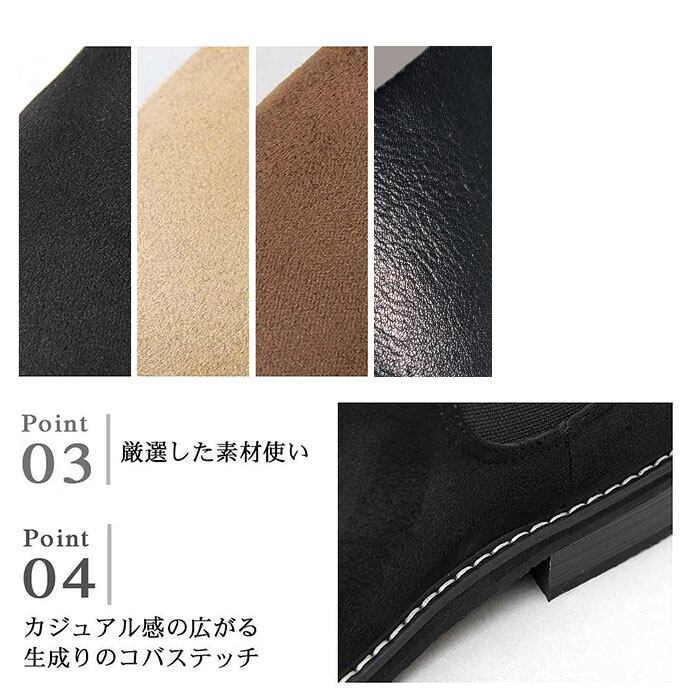 ・ブーツ履き口に伸縮性のある素材を用いた、サイドゴア仕様。脱ぎ履きがしやすく、すっきりとした印象に。