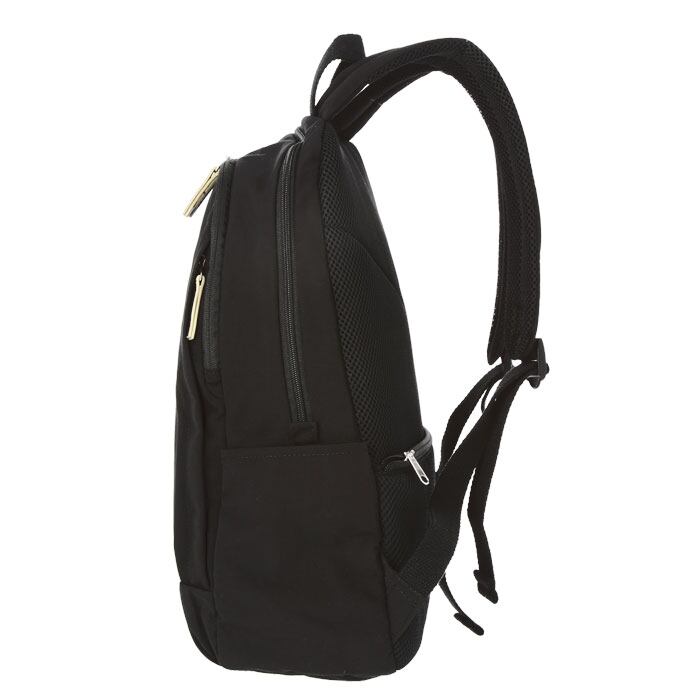 ・両側面にペットボトルや折りたたみ傘を収納できるオープンポケット、背面にセキュリティ面も安心な、ファスナーポケットを装備。