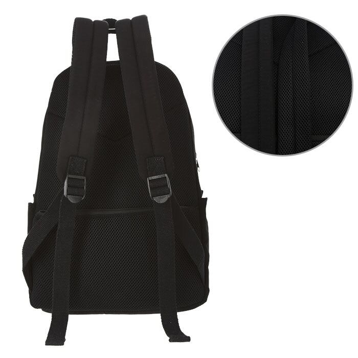 ・背面とショルダー部分は通気性のよいメッシュ素材&クッションで仕上げて、快適な背負い心地を実現。