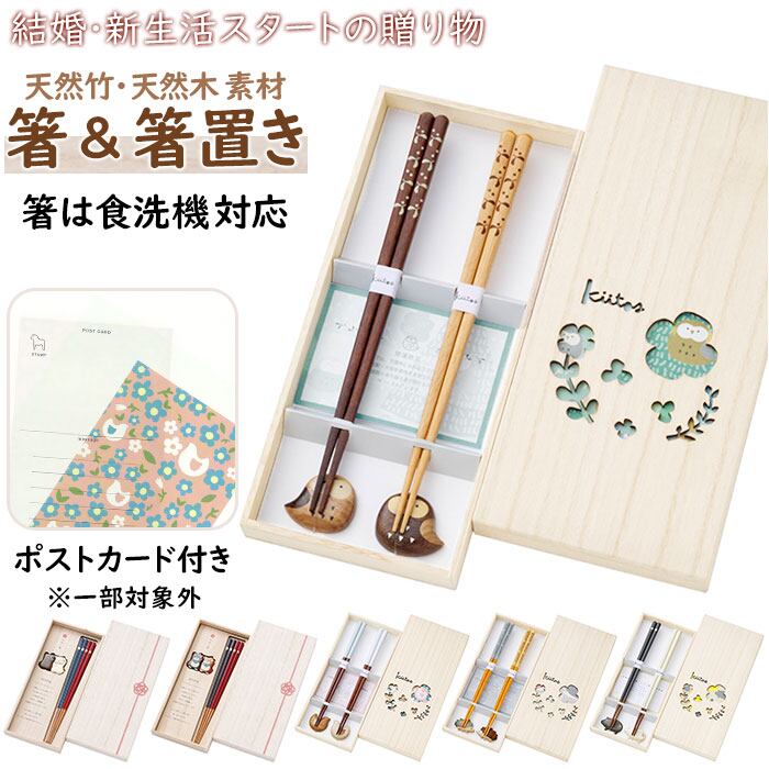 ・天然竹や天然木素材を使った箸&箸置きのセット。(※種類により、素材が異なります。)