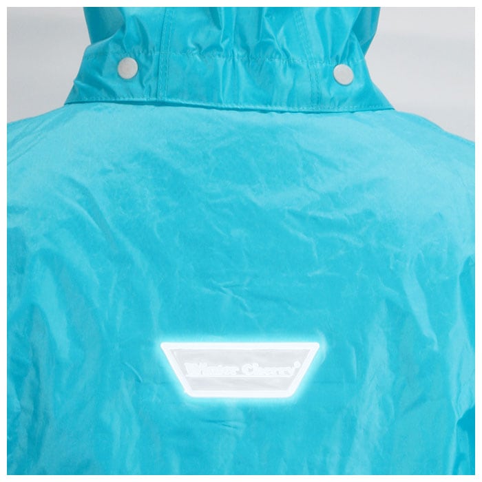 ・背面には安全性を高める反射ワッペン付き。薄暗い雨の日でも、すれ違う車から認識されやすくなり、安心して着用できる。