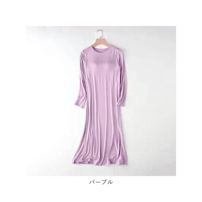 カップ付き ルームウェア 通販 長袖 ロング ワンピース ブラつき インナー パジャマ レディース ひざ下 シンプル 大きいサイズ マタニティ 無地 かわいい リラックス 外出