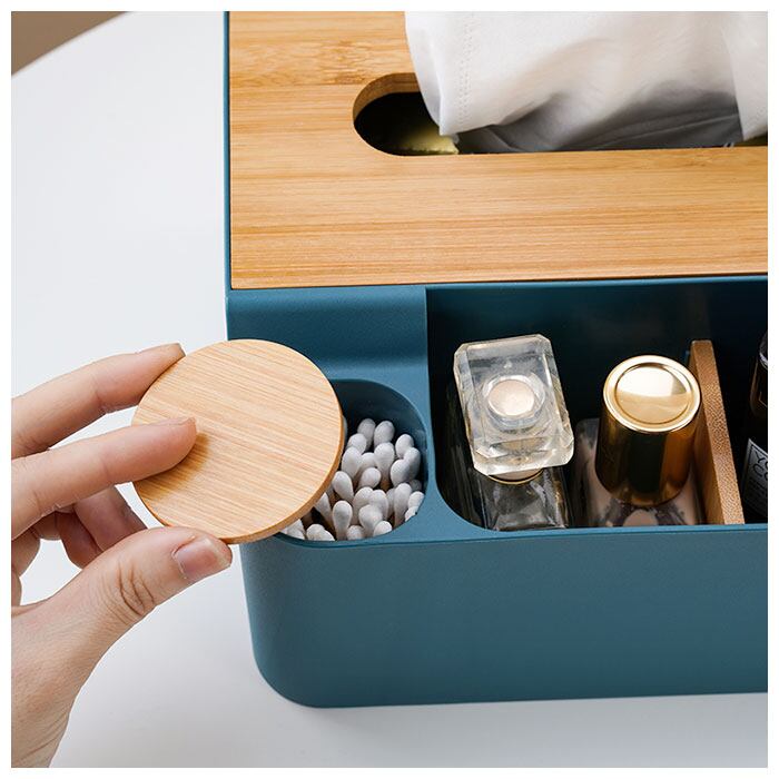 ・ティッシュケース部分には、ソフトタイプのティッシュをたっぷり詰め替えてストックできるので、リビングにはもちろん、サニタリースペース用の小物入れにも最適。(※ティッシュのサイズによっては入らない場合もあります。紙箱タイプのティッシュではなく、ソフトケースタイプのティッシュを詰め替えてご使用ください。)