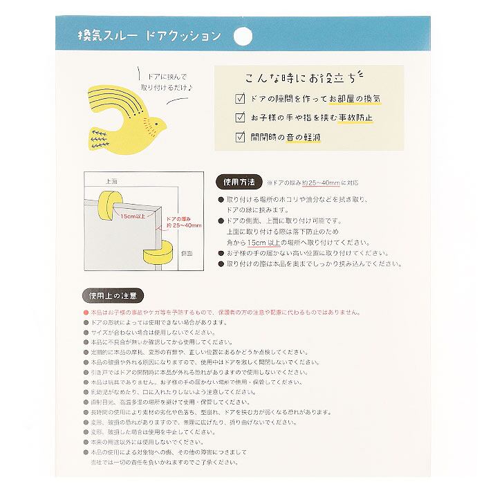 ※長時間の使用により素材の劣化や色落ち、型崩れ、ドアを挟む力が弱くなる恐れがあります。