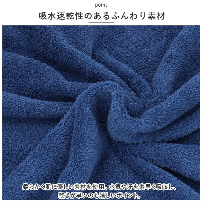 ・柔らかく肌に優しい素材を使用。水気や汗を素早く吸収し、乾きが早いのも嬉しいポイント。