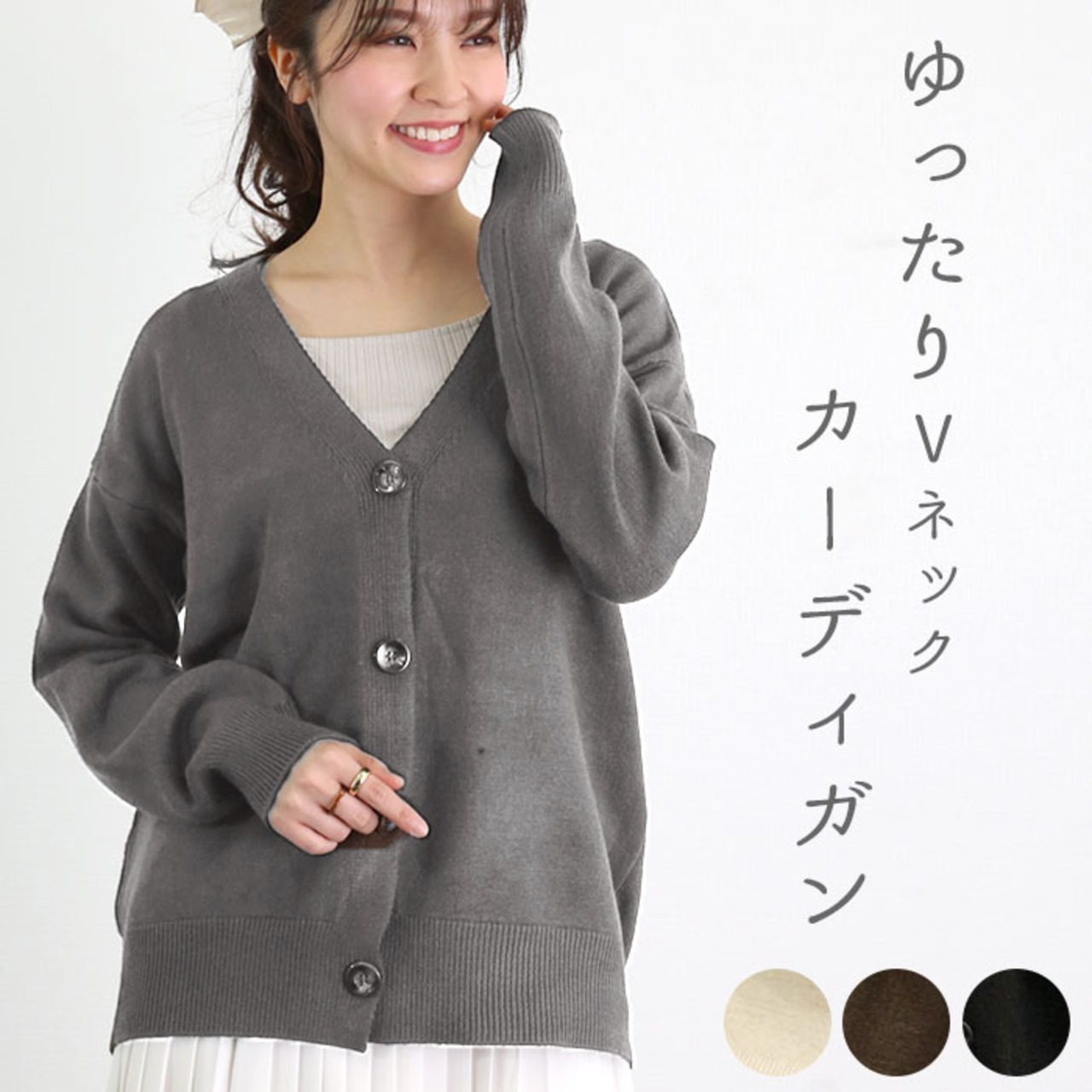 ・ゆったり着れるシンプルなVネックニットカーディガンが発売♪