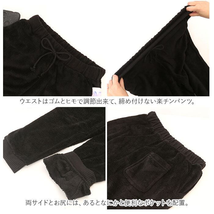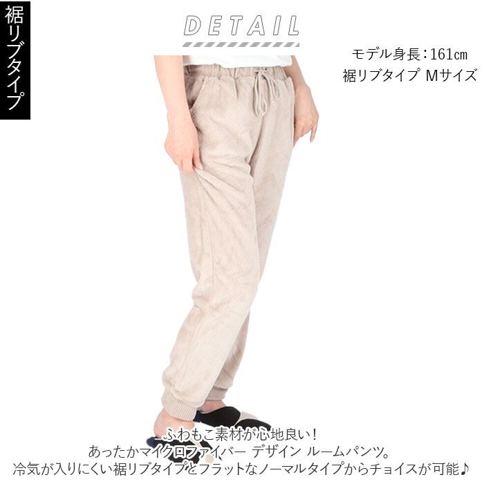 ・ふわもこ素材が心地良い!あったかマイクロファイバー デザイン ルームパンツ。