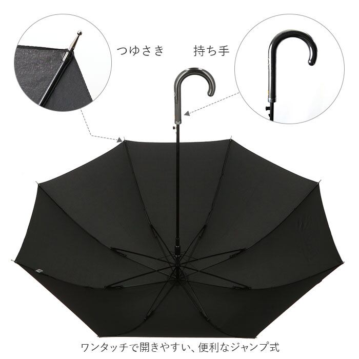 ・片手に荷物を持っている時や急に雨が降り出した時もワンタッチで開きやすい、便利なジャンプ式。手元ハンドル上部の押しボタンで簡単オープン!