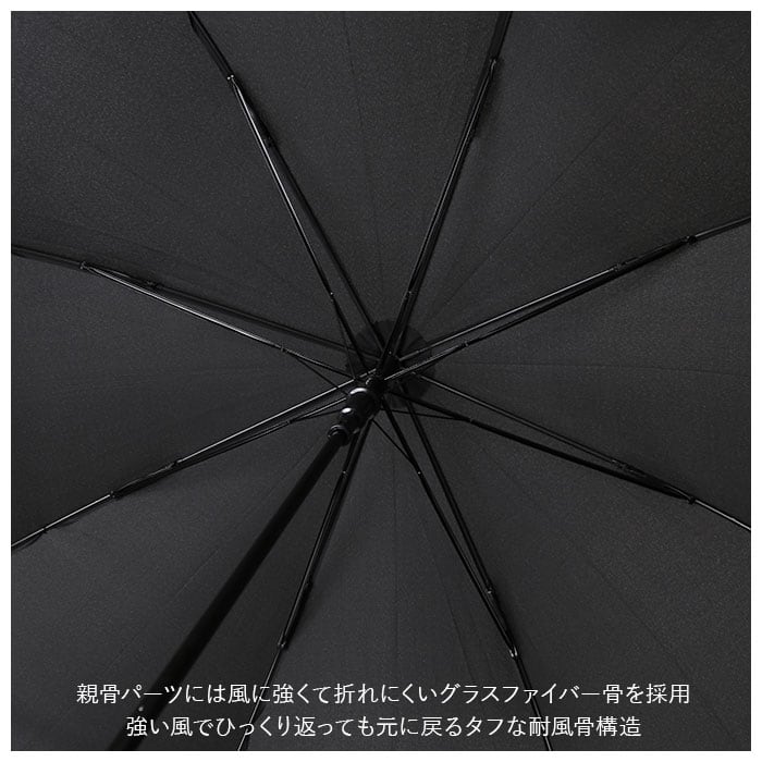 ・親骨パーツには風に強くて折れにくいグラスファイバー骨を採用し、強い風でひっくり返っても元に戻るタフな耐風骨構造。