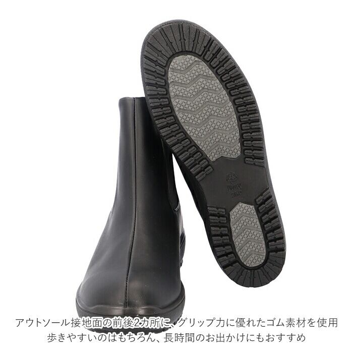 ・伸縮性に優れ、履き口がサッと広がる幅広サイドゴアで脱ぎ履きがスムーズ。