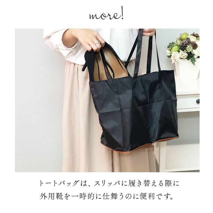 ・収納ポーチは履いてきた靴を収納できるトートにもなる便利な仕様。