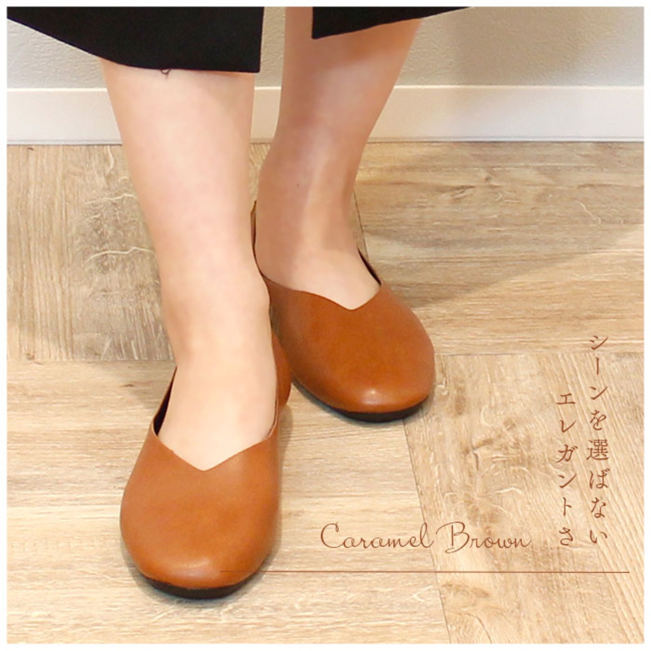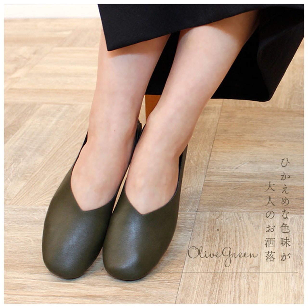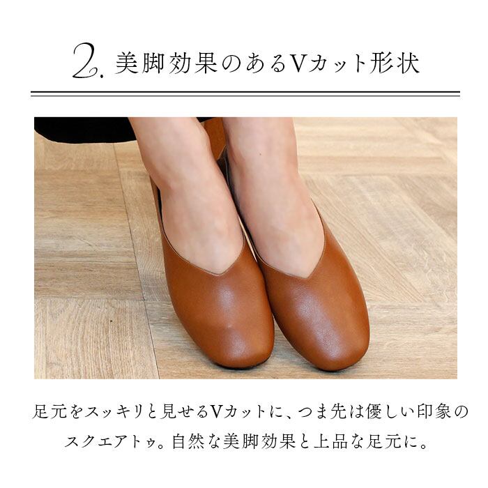 ・美脚効果と上品な印象を与えるVカットとつま先はスクエアトゥ形状。カジュアルでもフォーマルでもマッチするシンプルなデザインが嬉しい。