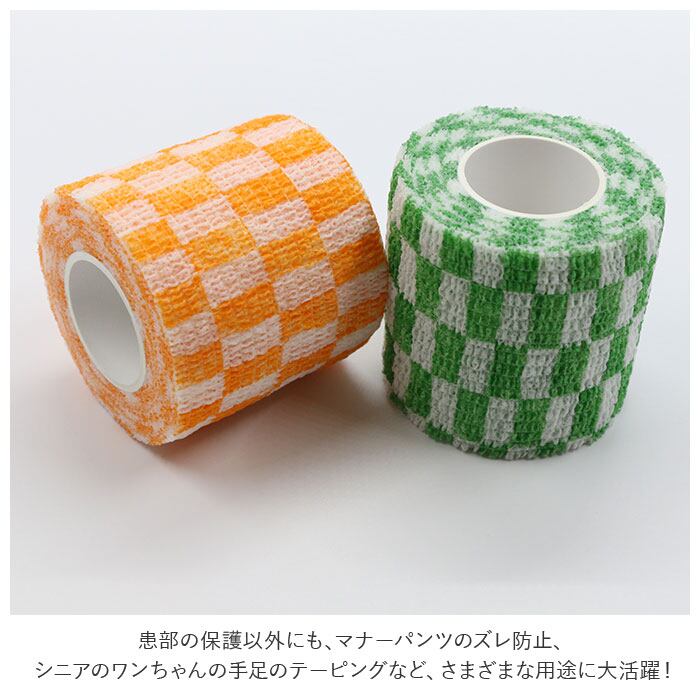 ・患部の保護以外にも、マナーパンツのズレ防止、シニアのワンちゃんの手足のテーピングなど、さまざまな用途に大活躍!